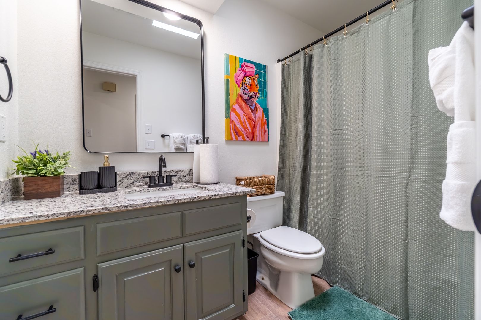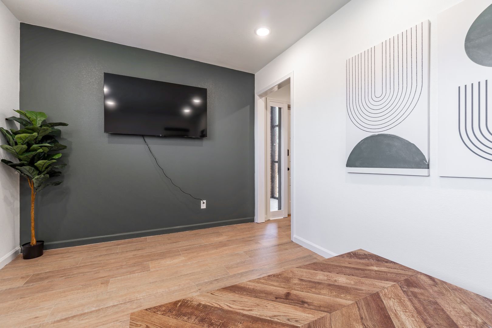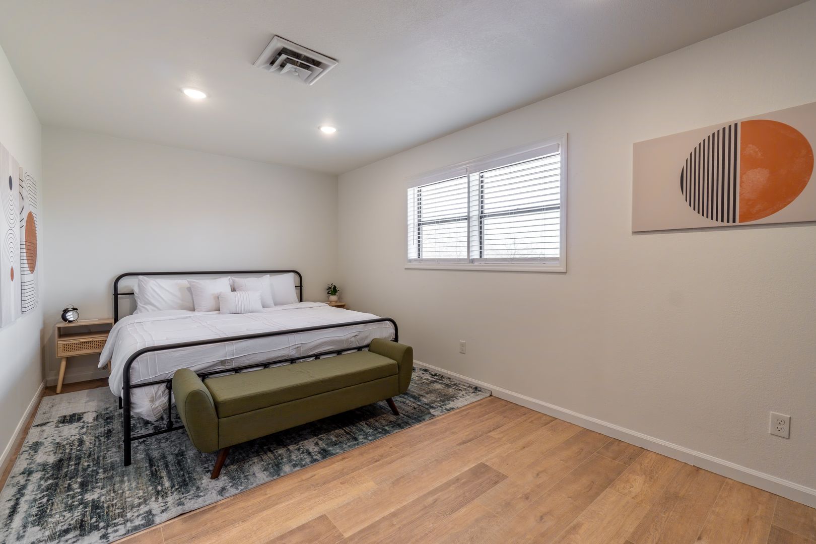 Located in the heart of town, this modern 1-bedroom apartment offers the perfect blend of comfort and convenience. Step into a cozy living room designed for relaxation, with plenty of space to unwind after a day of exploring. The separate king-size bedroom provides a private retreat, complete with its own TV for added comfort.