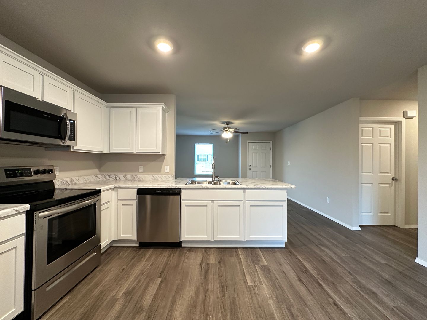 Welcome to this beautiful new construction, brick, 3 bed/2 bath home with a 2-car garage! This stunning property offers a roomy and beautiful kitchen, featuring marble-look countertops and beautiful vinyl-plank flooring. With its ample carpeted bedrooms, well-appointed bathrooms, and convenient garage, this home combines comfort and functionality seamlessly. Don't miss the opportunity to call this delightful property your own!