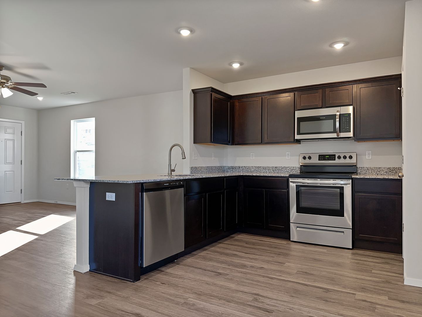 Welcome to this beautiful new construction, brick 3 bed, 2 bath home with a 2-car garage! This stunning property offers a roomy and beautiful kitchen, featuring granite countertops and beautiful vinyl-plank flooring. With its ample carpeted bedrooms, well-appointed bathrooms, and convenient garage, this home combines comfort and functionality seamlessly. Don't miss the opportunity to call this delightful property your own!